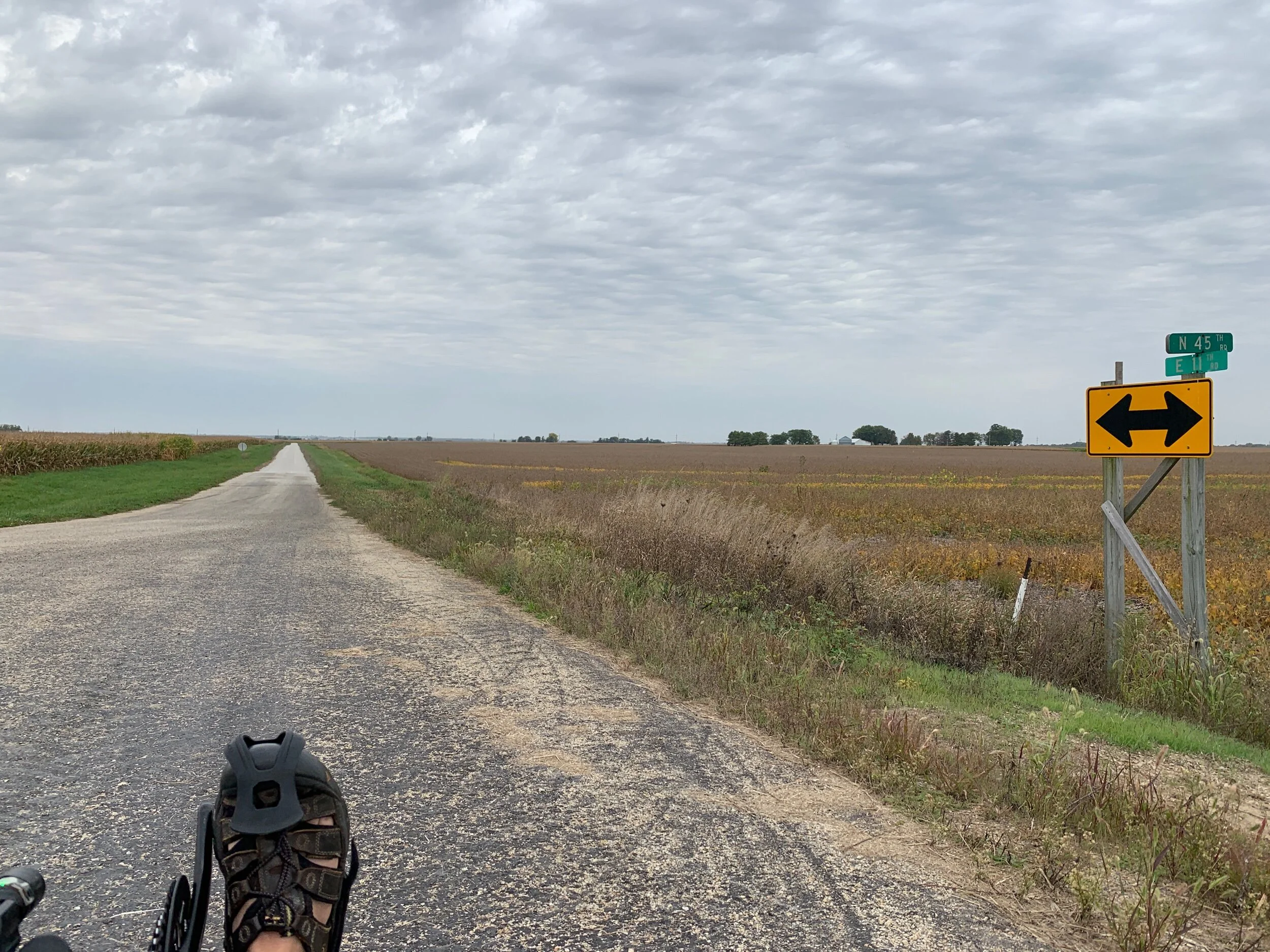 It was gravel in both directions, and the other way would have taken me over to US 34, which is a major two-lane highway, so I figured I’d just need to suck it up. Besides, probably the intersection ahead would yield way to asphalt. Right?